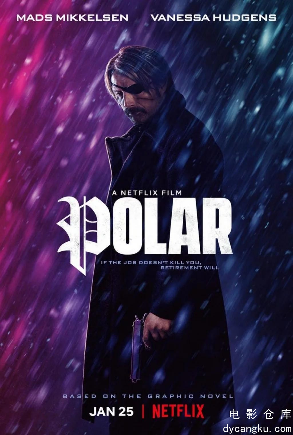 该片改编自维克多·桑托斯小说《极地:随寒袭来》,讲述了别名“黑色凯萨”的世界顶尖杀手邓肯·维兹拉在享受退休生活之际,前雇主突然指控他不利于公司。他在身不由己的情况下重回本行,与一群杀手正面对决的故事。